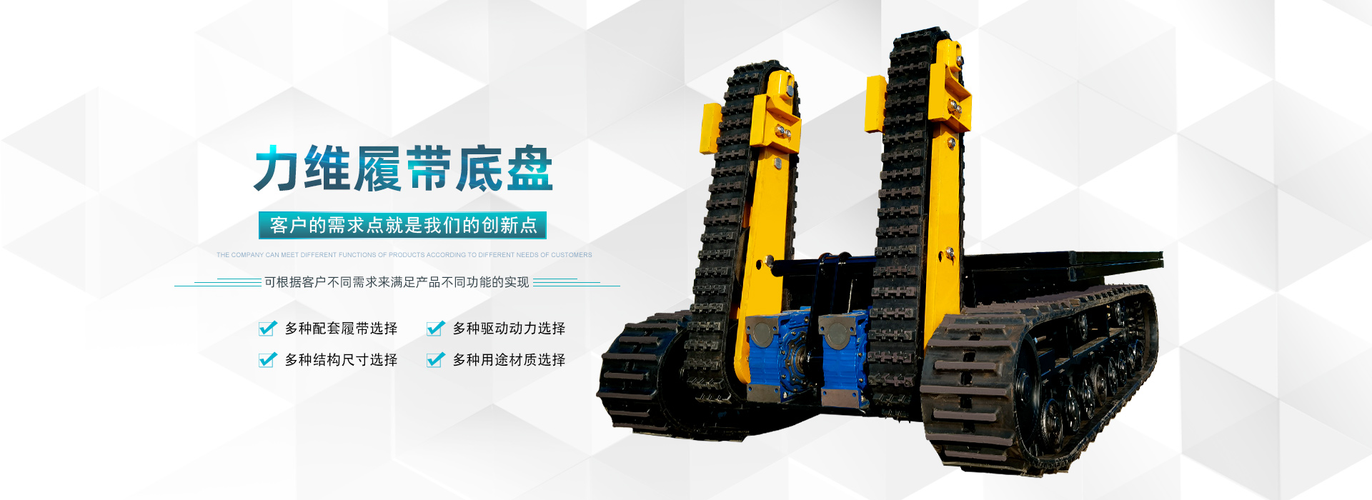 公司秉承“因?yàn)閷?zhuān)注,所以超越”的商業(yè)理念,“科技創(chuàng)造美好未來(lái)”的企業(yè)發(fā)展信念,以不斷進(jìn)取、勇于創(chuàng)新的企業(yè)精神,不斷拓展與完善產(chǎn)業(yè)鏈,客戶(hù)的需求點(diǎn)就是我們的創(chuàng)新點(diǎn)。力維智能裝備,您身邊的履帶裝備制造商。